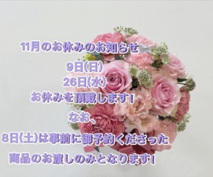 11月は 9日(日) 26日(水)に お休みを頂戴します。 また8日(土) […]